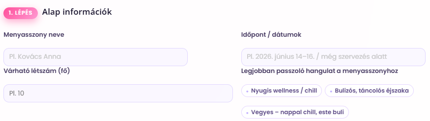 - milyen típusú legyen a lánybúcsú (wellness, brunch, buli, elegáns, kreatív),